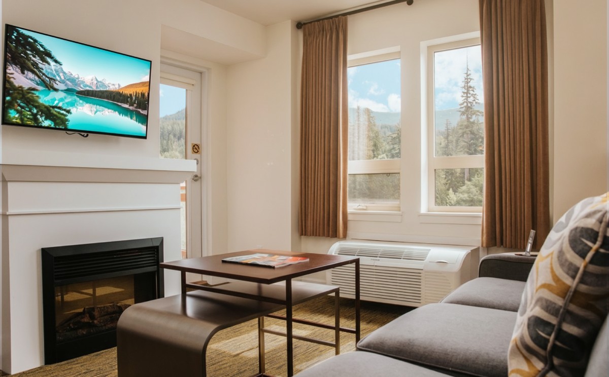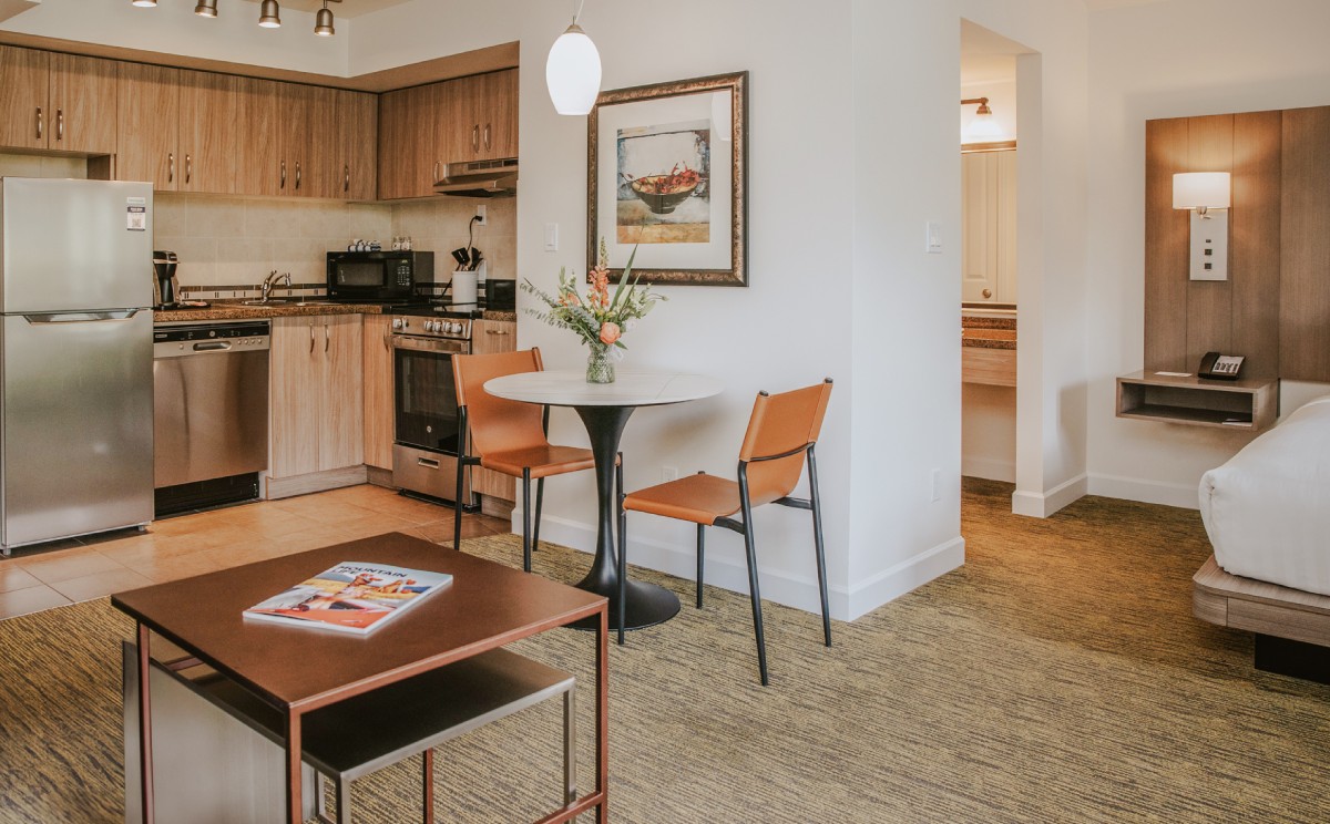 A choice of 111 Studio, One or Two Bedroom Suites featuring fully equipped kitchens and private balconies. One and Two Bedroom suites feature in-suite laundry facilities, cozy fireplace and scenic views are available.